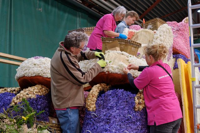 Take a look behind the scenes at the decoration of the floats, which this year takes place for the first time in Noordwijkerhout at JUB Holland. Hundreds of volunteers work 3 days, day and night, to decorate the floats with spring bulb flowers. A unique and festive event. Tickets online at www.bloemencorso-bollenstreek.nl