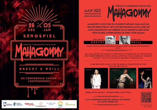 This music theatre production by Aan Zee Theaterproducties combines the sharp social critique of Bertolt Brecht with the powerful music of Kurt Weill. A story that remains strikingly relevant today. Expect a performance full of energy, humour and tension — for lovers of theatre, music and stories that resonate.