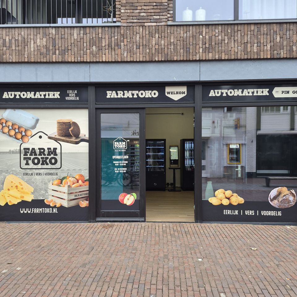 Farmtoko is a farm vending service where you can easily buy fresh and local products. You can find us 24/7 in Nieuw-Vennep at IJweg 1255 and, from 12 February 2026, in Lisse at Kanaalstraat 1A.