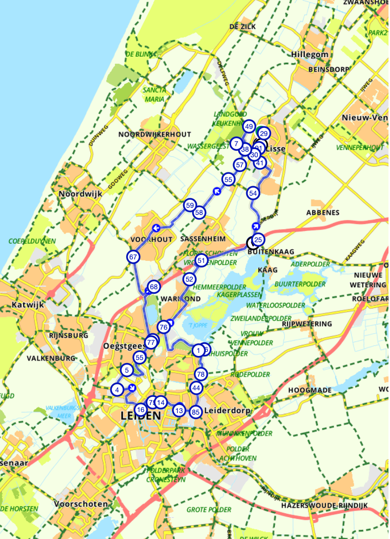 From Lisse, a cycle trip to the city of Leiden is within easy reach! You will cycle a beautiful route through the several villages in the Bulb Region and into the city of Leiden.