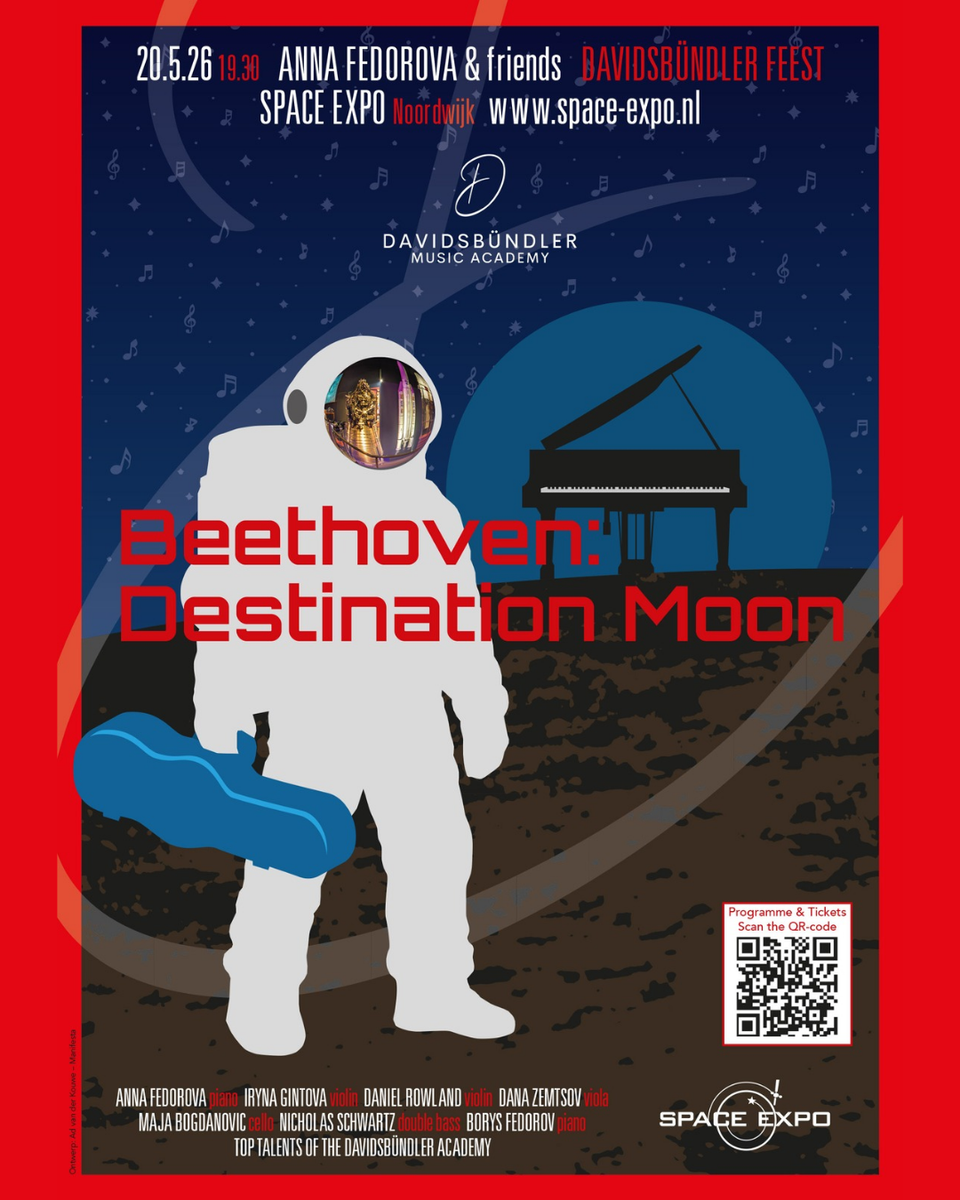 Na meer dan 50 jaar is het zover: de mens keert terug naar de maan. Met NASA’s Artemis-programma – en voor het eerst met een prominente rol voor ESA – staat een nieuw tijdperk in de ruimtevaart voor de deur. En dat vieren we op een spectaculaire manier. Space Expo verandert op 20 mei voor één avond in een unieke concertzaal. Topmusici van de Davidsbündler Academy nemen je mee op een meeslepende muzikale reis, midden tussen raketten, satellieten en het International Space Station: een avontuurlijke soundtrack voor de volgende grote stap van de mensheid. Een avond waar wetenschap, verbeelding en muziek samensmelten!