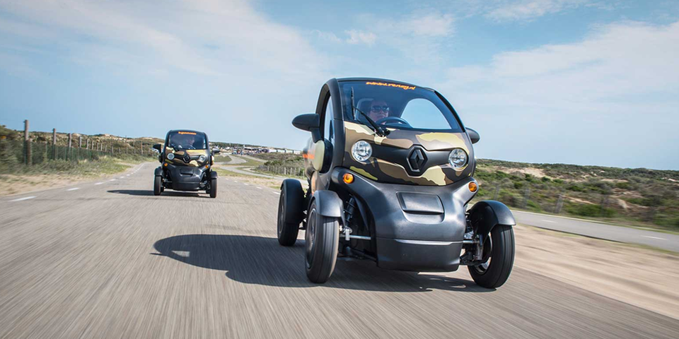 Cruise ontspannen in een 2-persoons elektrische Renault Twizy