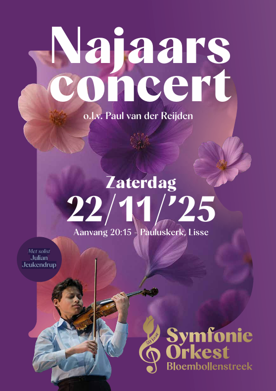 Op zaterdag 22 november 2025 om 20.15 uur geeft het Symfonieorkest Bloembollenstreek onder leiding van dirigent Paul van der Reijden weer haar traditionele Najaarsconcert in de Pauluskerk in Lisse. De zaal gaat open om 19.45 uur.