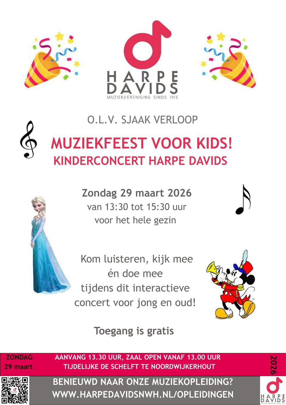 Op 29 maart tovert muziekvereniging De Harpe Davids tijdelijke de Schelft om tot een groots en vrolijk Muziekfeest voor Kids! Tijdens dit interactieve concert nemen de muzikanten jong en oud mee in de magische wereld van muziek.
