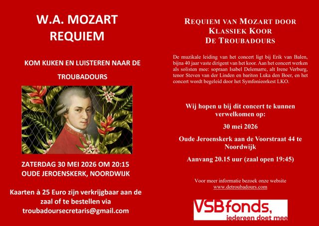 Aan het concert werken als solisten mee: sopraan Isabel Delemarre, alt Irene Verburg, tenor Steven van der Linden en bariton Luka den Boer, en het concert wordt begeleid door het Symfonieorkest LKO.