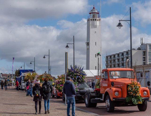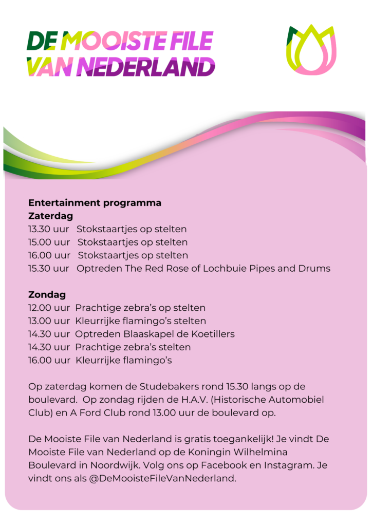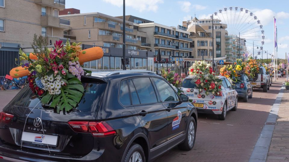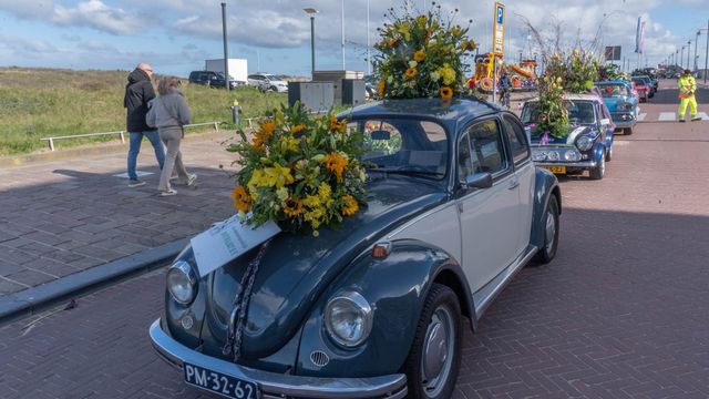De Mooiste File van Nederland staat ook dit jaar weer opgesteld op de Koningin Wilhelmina Boulevard in Noordwijk. In de file staan luxe auto’s en old timers versierd met de mooiste bloemen.