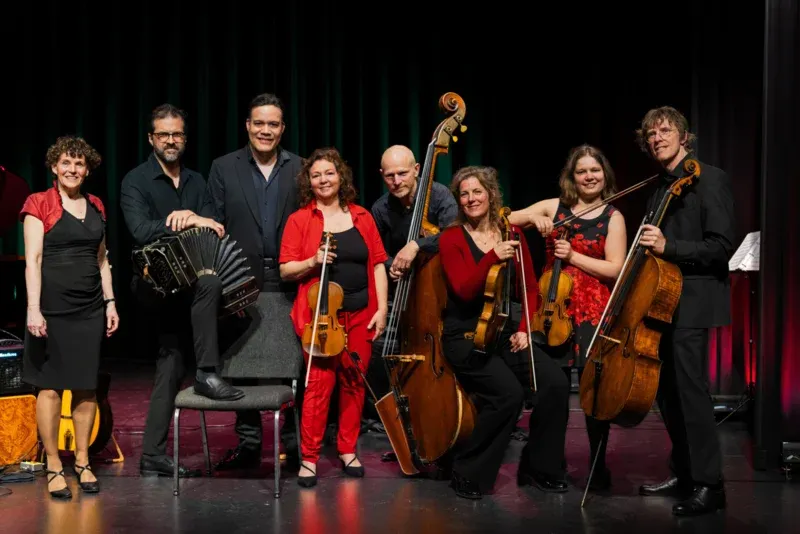 Met vijf strijkers, een bandoneon en piano/klavecimbel.