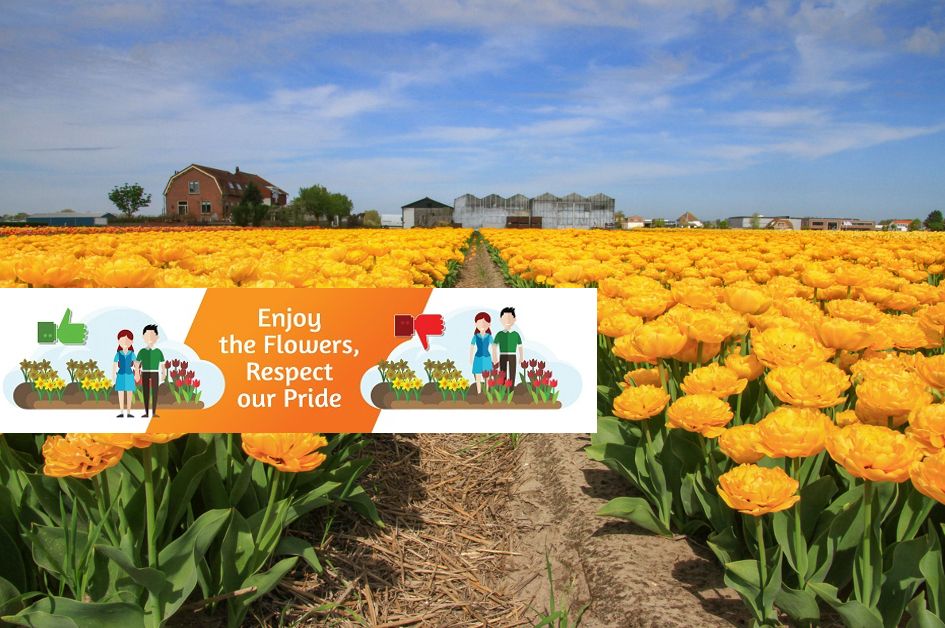 Sta je aan de rand van zo'n felgekleurde bloemenzee, dan is de verleiding groot om even tussen de bloemen te gaan staan. Toch vragen we je nadrukkelijk om de velden niet in te lopen. De bloemen en bollen raken makkelijk beschadigd. Ook worden zo ongemerkt plantenziektes en plagen verspreid. En dat betekent een flinke schadepost voor de kwekers. Dus maak je mooiste bloemenfoto of selfie aan de rand van het veld!