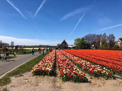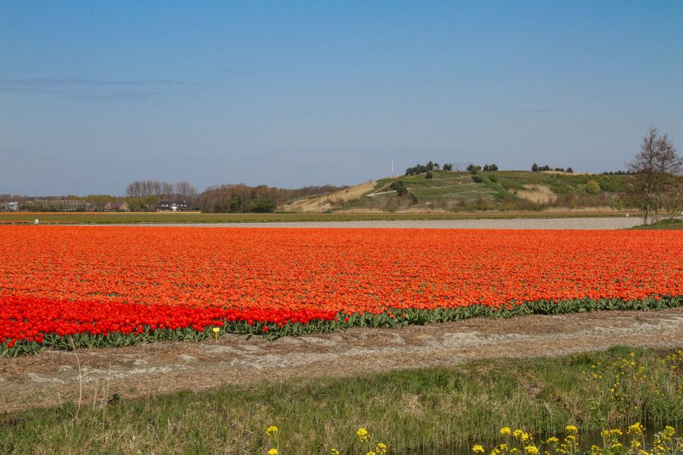 Langs de bollenvelden richting de zee. Geniet onderweg van het uitzicht op uitgestrekte velden vol bloemen in alle kleuren.