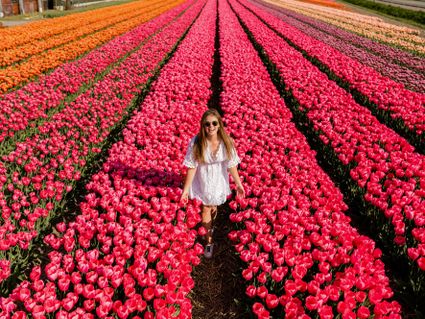 De uitgestrekte bollenvelden transformeren het landschap in het voorjaar in een kleurrijke lappendeken en geven je vanuit de lucht een adembenemd uitzicht